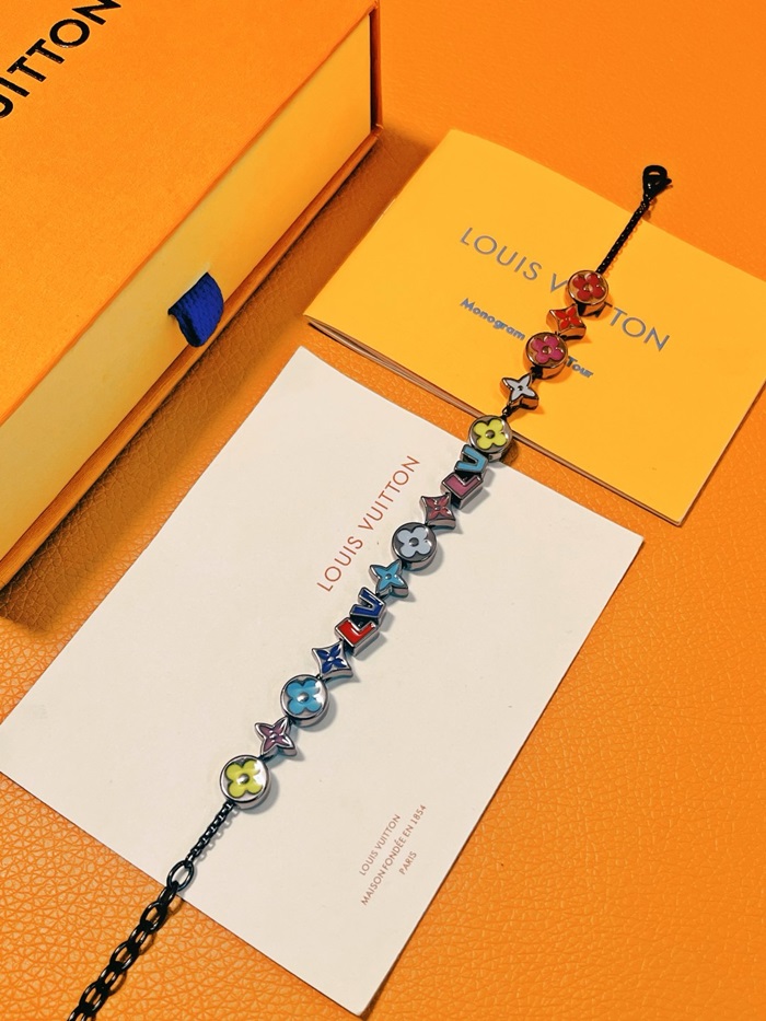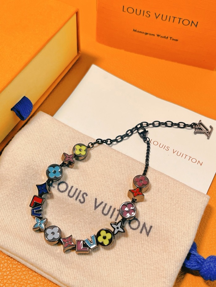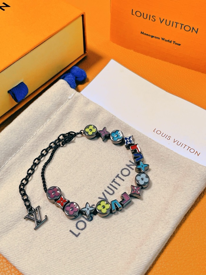ルイヴィトンレディースブラックゴールドブレスレットc1950