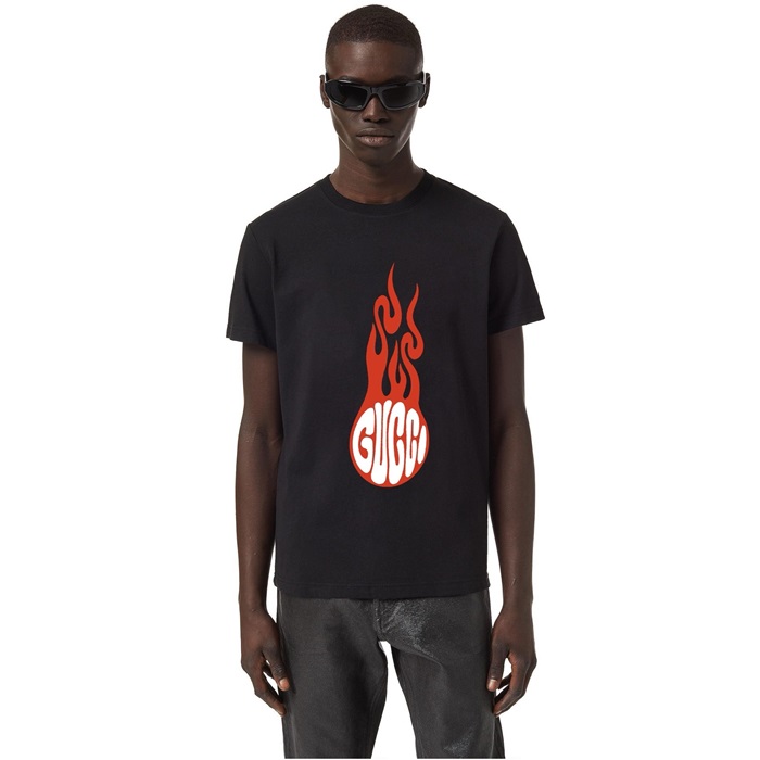 グッチメンズブラック半袖Tシャツc1661