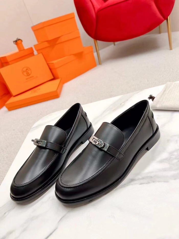 エルメスメンズブラックスタンローファーs1361